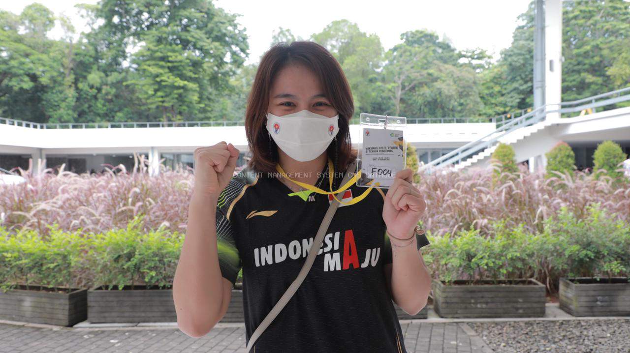 Jakarta: Melati Daeva Oktavianti menjadi salah satu atlet yang menjalani vaksinasi di Istora Senayan, Jakarta, Jumat (26/2). Pebulutangkis andalan Indonesia ini pun meyakinkan kepada masyarakat secara luas untuk tidak takut divaksin.
